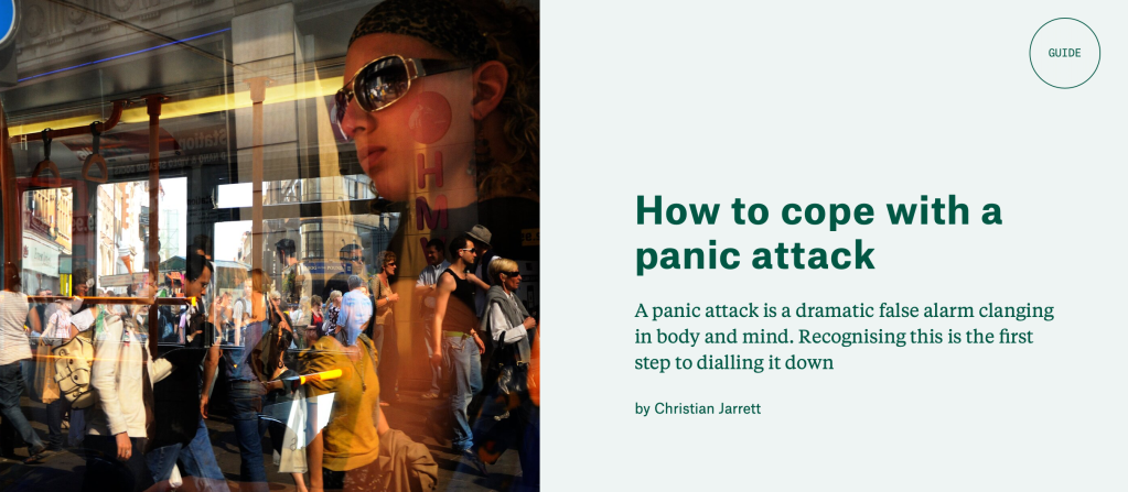 A panic attack is a dramatic false alarm clanging in body and mind. Recognising this is the first step to dialling it down. Christian authored this Psyche Guide in July.